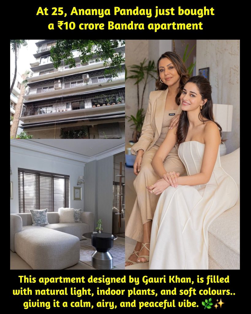 At 25, Ananya Panday made a milestone move — she purchased her very own one-bed apartment in the heart of Bandra, Mumbai. Nestled just a few floors above her parents’ residence, this space marks both independence and emotional grounding. The Indian Express+1