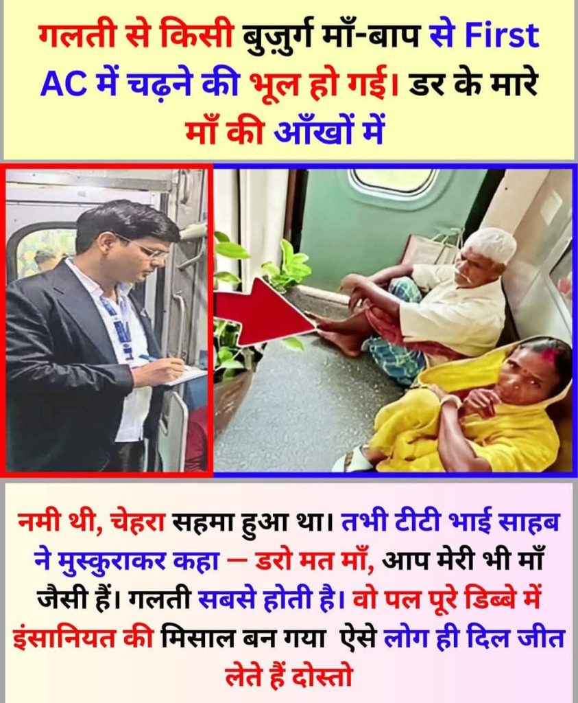 एक बुजुर्ग माँ-बाप गलती से First AC में चढ़े, लेकिन टीटी की इंसानियत ने सबका दिल जीत लिया — दया ही असली नियम है।